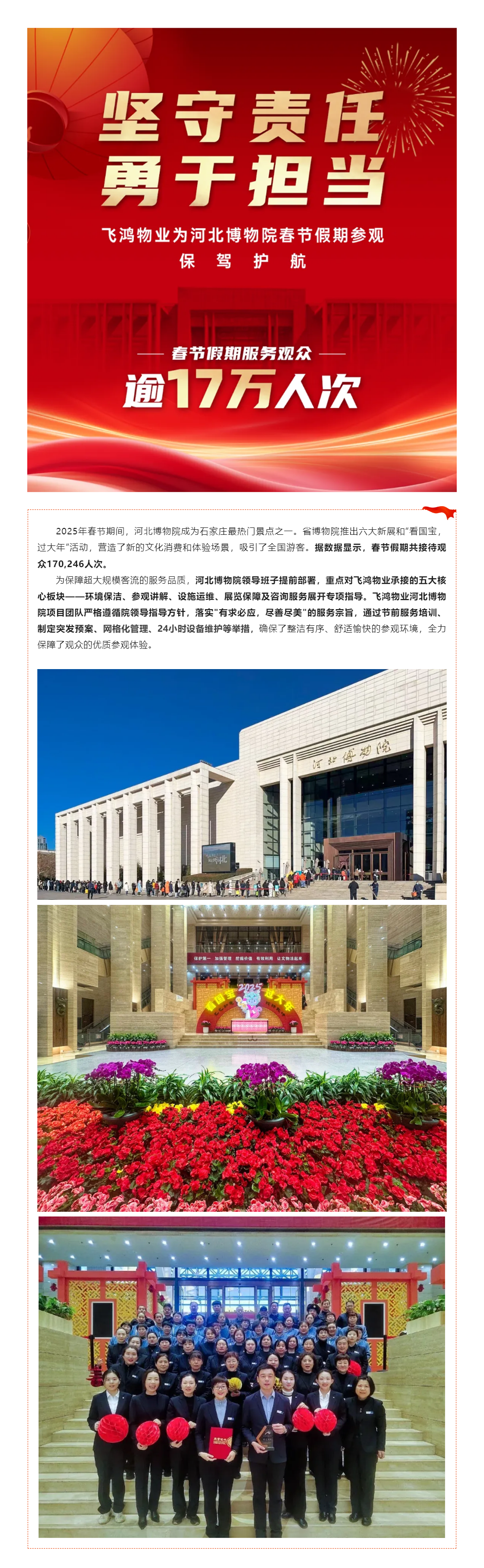 堅守責(zé)任 勇于擔(dān)當(dāng) | 飛鴻物業(yè)為河北博物院春節(jié)假期17萬觀眾保駕護(hù)航